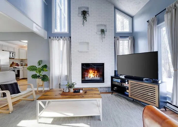 Charming Lakeside Retreat For 10 Tobyhanna villa is nestled within 10 minutes' drive of Coolbaugh Township Parks and provides a hot tub. Featuring a patio, the property is situated 4.1 km from the Tobyhanna State Park.